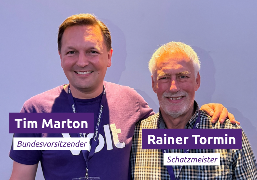 > Der Bundesvorstand ist mit Tim Marton (Bundesvorsitzender) und Rainer Tormin (Schatzmeister) wieder vollständig.> Das Strategieprogramm “RE:CHARGE 2029” ebnet den Weg für die 2029 anstehenden Europa- und Bundestagswahlen.> Gastgeber Volt Berlin schwört die Partei auf die Wahl zum Abgeordnetenhaus ein.