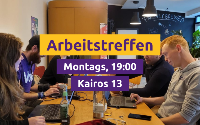 Wir treffen uns alle zwei Wochen im großen Team, um über Updates und Aufgabenverteilungen zu reden. Die Treffen finden hybrid (online + offline) statt, damit jede*r unabhängig von der Mobilität oder Standort daran teilnehmen kann.