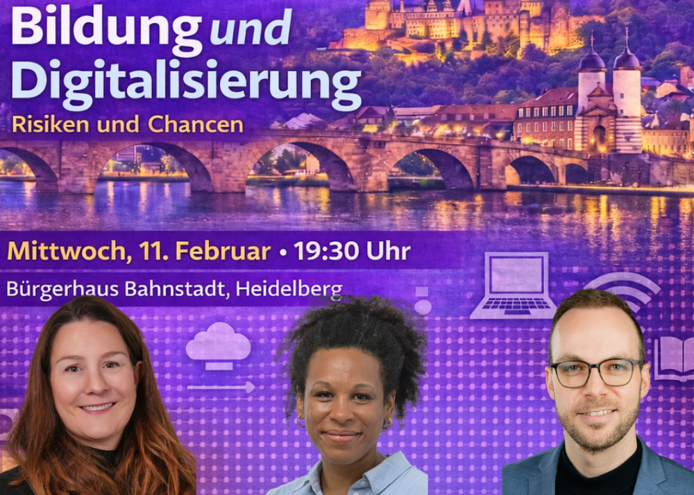 Im Vorfeld der Landtagswahl 2026 organisiert Volt Heidelberg eine öffentliche, interaktive Podiumsdiskussion zum Thema „Digitalisierung und Bildung – Chancen und Risiken“. Ziel der Veranstaltung ist es, Bürgerinnen und Bürger aktiv in den Austausch mit Expertinnen und Experten aus Bildung, Praxis und Politik einzubeziehen und gemeinsam über zukunftsfähige Lösungen zu diskutieren.