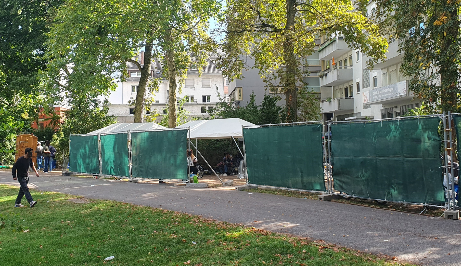 Die beteiligten Dezernent:innen arbeiten intensiv zusammen, um die ungewohnte Situation, negative Auswirkungen und die Herausforderung des provisorischen Außenbereichs bestmöglich zu gestalten. Mit Maßnahmen wie verstärkter Polizeipräsenz, häufigerer Reinigung durch den EAD, Unterstützung der Schulen bei der Sicherung von Schulwegen und der Sicherung der Schulhöfe, Kooperation mit der Drogenszene und Gesprächen mit Anwohner:innen wird die herausfordernde Situation aktiv begleitet.