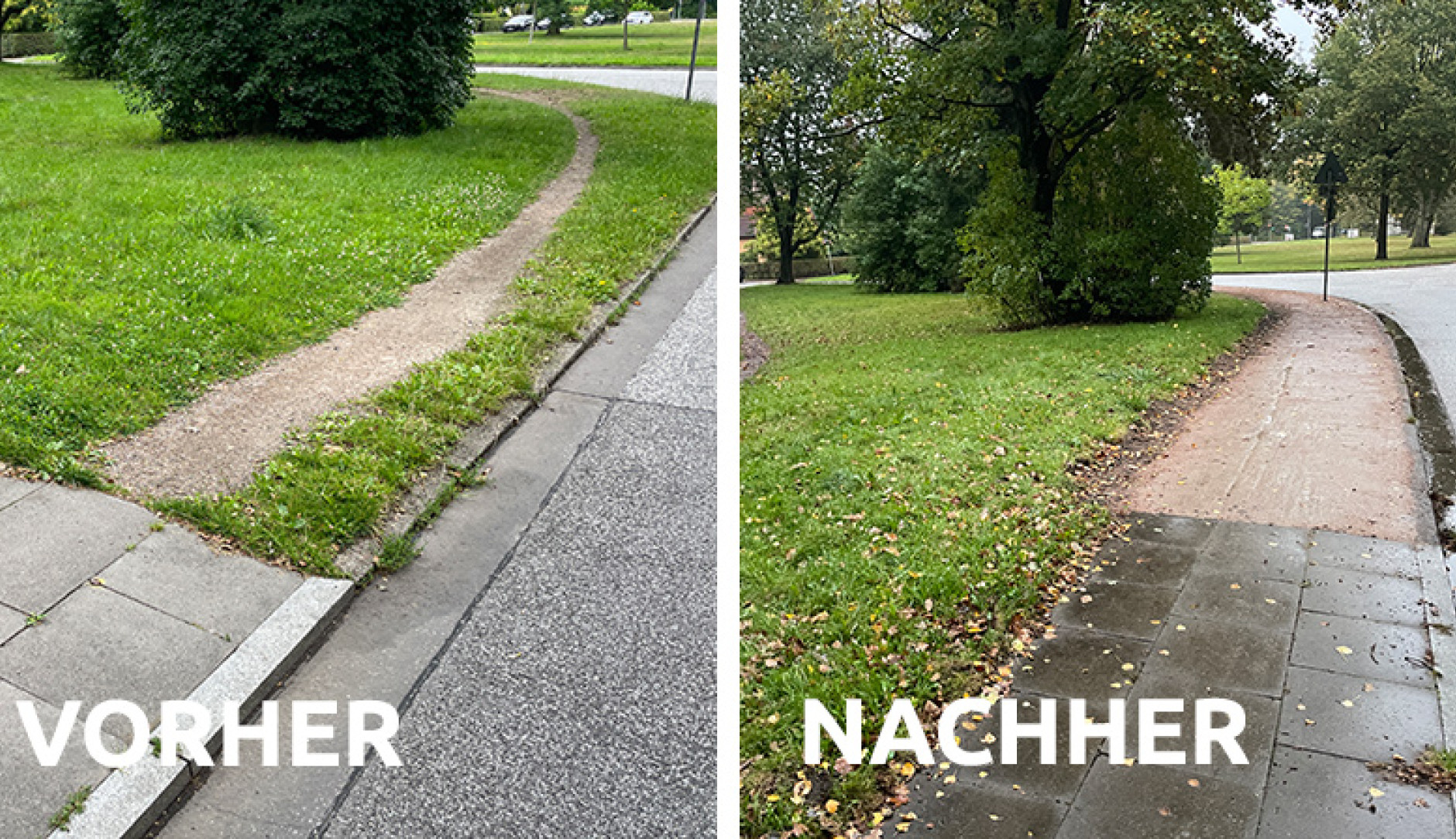 Viele Gehwege in Hamburg-Nord brauchen genau solche schnellen, pragmatischen Lösungen. Wenn ihr gefährliche oder unzureichende Stellen kennen solltet, dann gibt es zwei einfache Wege aktiv zu werden: