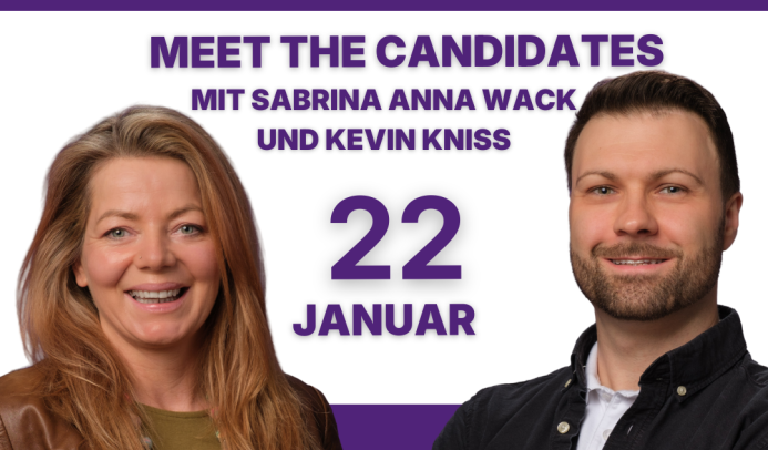 Du möchtest die Kandierenden kennenlernen oder uns mit einer Spende unterstützen - dann folge gerne dem Link zu allen weiteren Informationen.