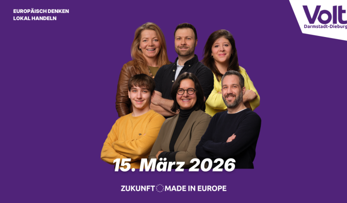 Schön, dass du da bist! Wir sind Volt – die paneuropäische Bewegung, die für Fortschritt, Transparenz und ein vereintes Europa steht. Als lokales Team in Darmstadt-Dieburg setzen wir uns mit Leidenschaft für eine nachhaltige, digitale und soziale Zukunft in unserer Region ein – gemeinsam mit Menschen in ganz Europa.
