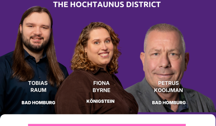 Am 15.03.2026 finden in Hessen die nächsten Kommunalwahlen statt. Mit einem starken Team, innovativen Konzepten und europäischem Geist sind wir bereit, die Politik vor Ort aktiv mitzugestalten, um mehr Transparenz, neue Lösungen und eine offene, zukunftsorientierte Politik auf den Weg zu bringen. Wir kandidieren für den Hochtaunuskreis, den Main-Taunus-Kreis sowie der Stadt Kronberg mit einer kompletten Liste, darüber hinaus in Oberursel und Bad Homburg in einem Bündnis mit lokalen Initiativen.