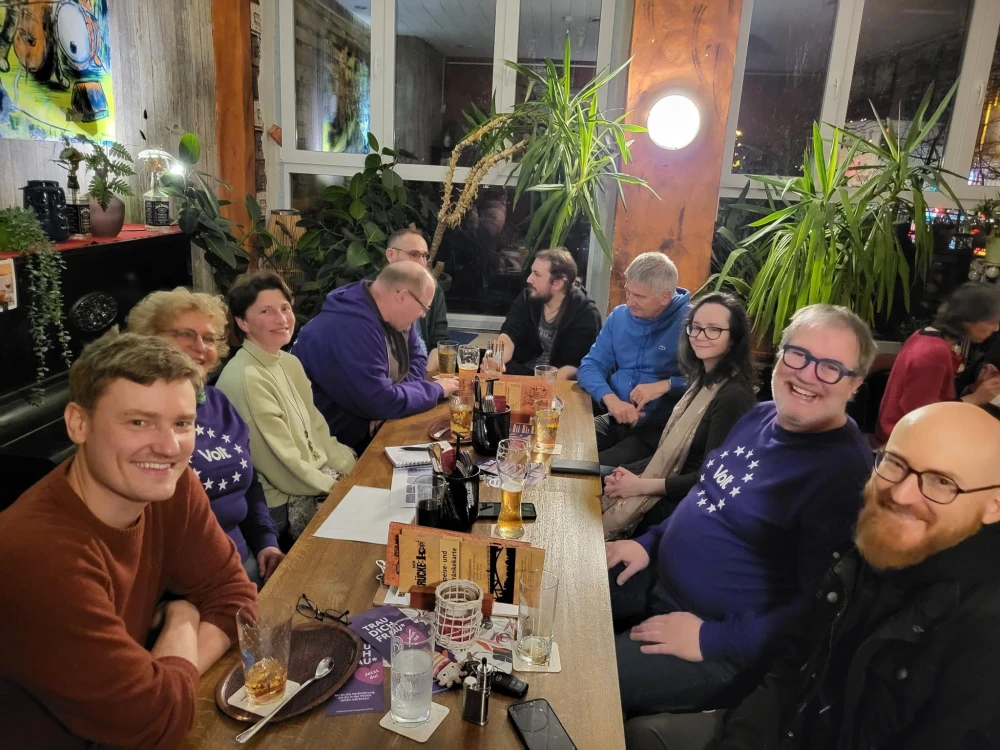 Egal ob Fragen zum Wahlprogramm, Ideen für die Nachbarschaft oder einfach nur Neugier auf die Menschen hinter Volt – schnapp dir ein Getränk und löcher uns! 🍻☕