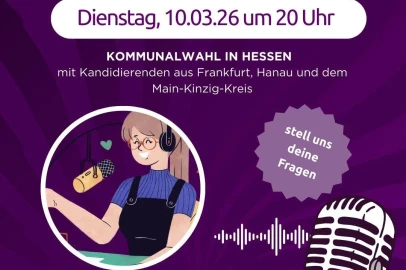 Du hast Fragen zur Kommunalpolitik in Frankfurt a. M., Hanau oder dem Main-Kinzig-Kreis? Dann komm zu unserem Online-Wahlstand und sprich direkt mit den Kandidierenden Tim Englert (Frankfurt a. M.), Nina Marx (Main-Kinzig-Kreis) und Markus Schindler (Hanau)!