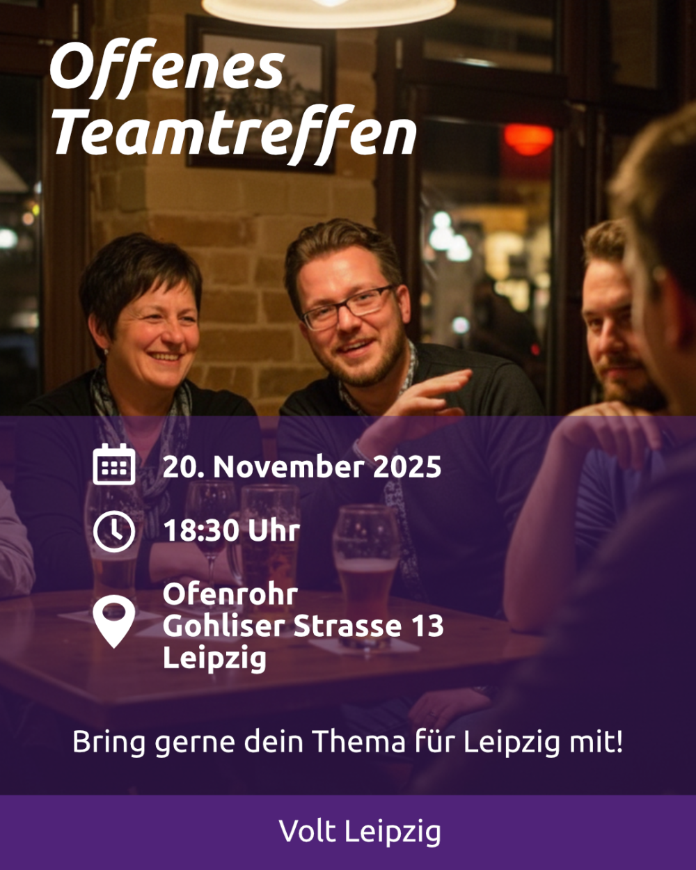 Du hast Lust mit anderen Politikinteressierten zu debattieren? Oder du willst das Team von Volt Leipzig kennenlernen?