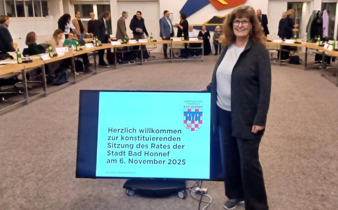 Als dienstältestes Mitglied – seit 26 Jahren – im Rat der Stadt Bad Honnef durfte Dr. Gabi Clooth-Hoffmeister (Volt) die konstituierende Sitzung des Rates am 6. November 2025 eröffnen und den Bürgermeister vereidigen. Sie betonte in ihrer Ansprache, Kommunalpolitik sei die unmittelbarste und menschlichste Form von Politik, und forderte den Rat zu einem respektvollen und verantwortungsbewussten Umgang miteinander auf. "Wahlkampf ist das eine. Aber nach der Wahl beginnt die gemeinsame Arbeit. Die Menschen erwarten von uns, dass wir miteinander nach Lösungen suchen, nicht gegeneinander" so Gabi Clooth-Hoffmeister.