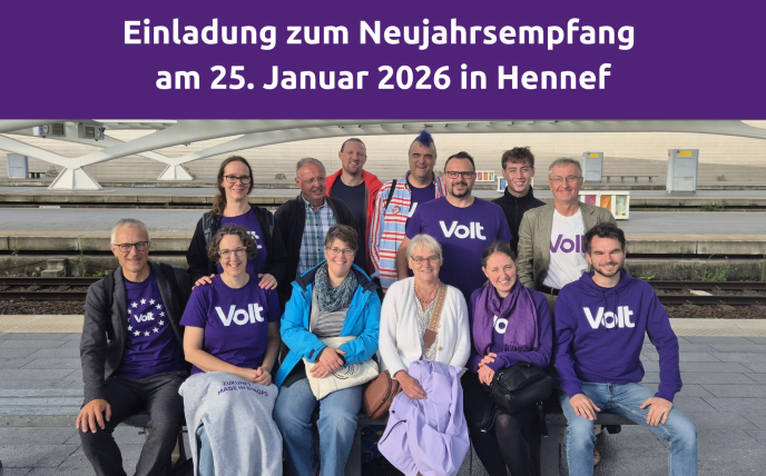 Volt Rhein-Sieg lädt herzlich alle Freunde und Interessierten zum Neujahrsempfang am 25. Januar 2026 ab 11:00 Uhr in Hennef ein. Wir treffen uns im Lokal Just Be Healthy, Bahnhofstraße 19, 53773 Hennef.