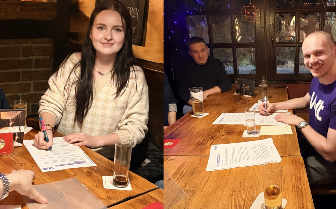Am Mittwoch, dem 05.11.2025 wurde erstmals eine Fraktion von Volt Rheinbach amtlich besiegelt. Im Rahmen des regelmäßig stattfindenden Meet & Greet im Irish Pub Shamrock in Rheinbach haben der Fraktionsvorsitzende von Volt Rheinbach, Tobias Path, sowie seine Stellvertreterin Lena Kroll, ihre zukünftige gemeinsame Ratsarbeit in eine verbindliche Form gebracht. Damit wurde der Startschuss für die kommende Ratsperiode 2025 - 2030 gegeben und es kann nun an die eigentliche Arbeit gehen. Alle wichtigen Ausschüsse konnten besetzt werden, auch mit sogenannten sachkundigen Bürgern. Das sind Mitglieder von Volt Rheinbach, die nicht in den Rat gewählt wurden aber trotzdem politisch in den Ausschüssen aktiv mitwirken werden.