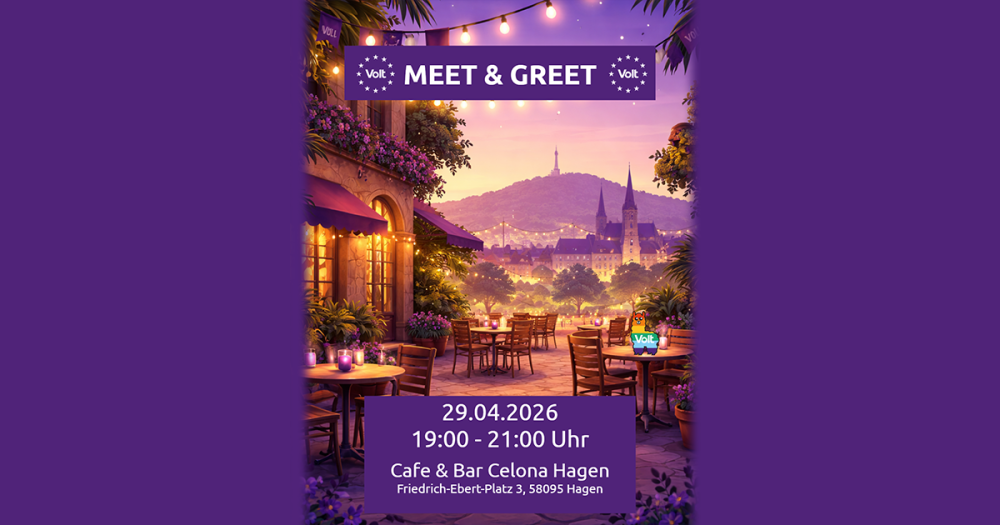 Ein Volt Meet & Greet in Hagen ist ein offenes Treffen für alle, die die politische Bewegung Volt in Hagen und der Region kennenlernen möchten. In lockerer Atmosphäre – ähnlich einem Stammtisch – kommen Interessierte, Unterstützerinnen und Mitglieder zusammen, um sich auszutauschen und neue Menschen kennenzulernen.