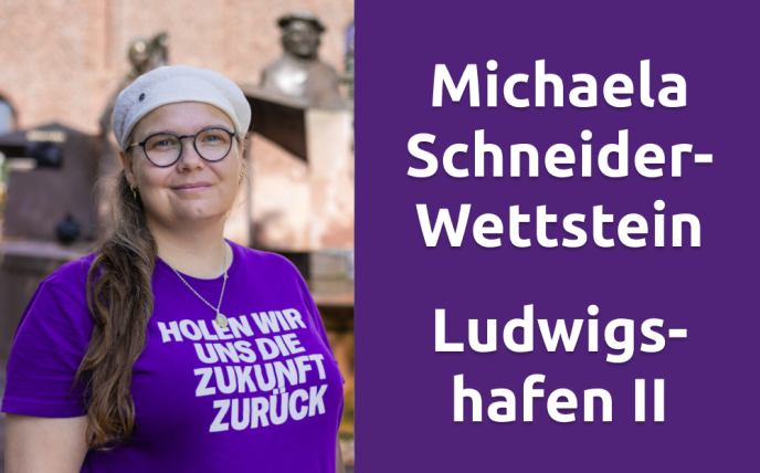 Michaela Schneider-Wettstein, 45, Referentin an der Goethe-Universität, tritt im Wahlkreis 36 Ludwigshafen II an. Sie engagiert sich seit Juni 2024 bei Volt und möchte sich für eine nachhaltige, gerechte und inklusive Gesellschaft einsetzen. „Wir müssen den Blick mutig nach vorne richten und gemeinsam für eine inklusive Gesellschaft einstehen“, betont Schneider-Wettstein. Zusätzlich trat sie 2025 bei der Oberbürgermeisterinnenwahl in Ludwigshafen an.