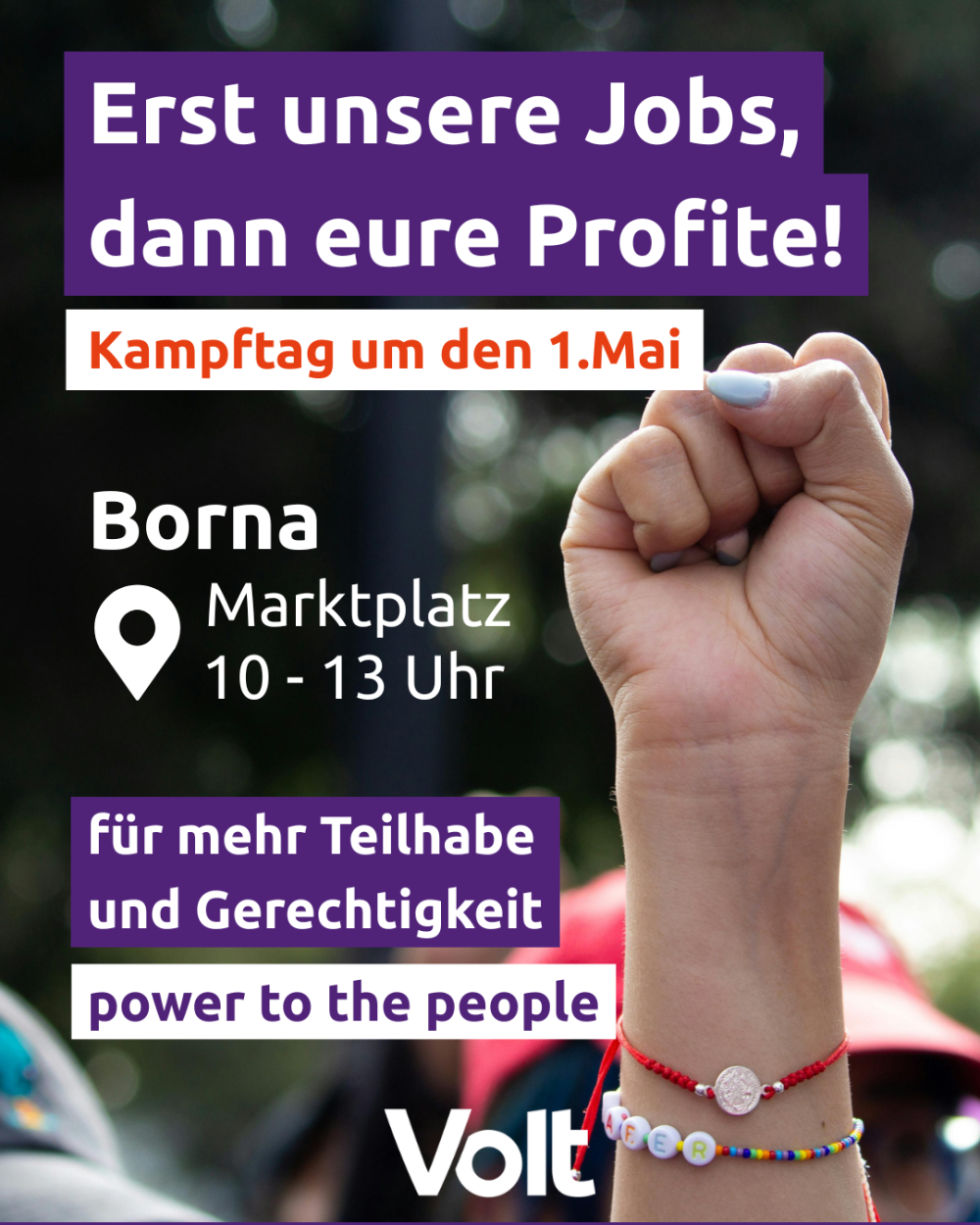 Unter dem Motto „Erst unsere Jobs, dann eure Profite“ zeigen wir uns am 1. Mai 2026 in Borna auf dem Marktplatz – kämpferisch, solidarisch und entschlossen.