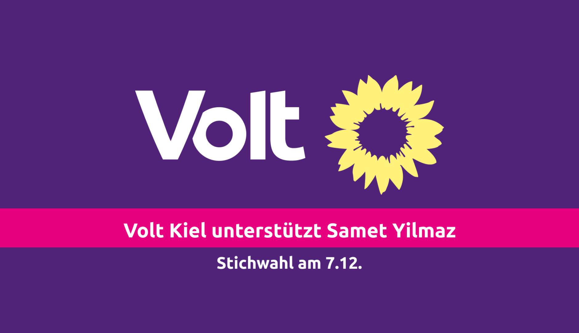 Kiel, 25. November 2025 – Volt Kiel hat nach einer Mitgliederbefragung entschieden, den Kandidaten der Grünen, Samet Yilmaz, in der Stichwahl zur Oberbürgermeisterwahl am 7. Dezember zu unterstützen. Gleichzeitig erklärt Samet sich bereit, als Oberbürgermeister drei inhaltliche Forderungen von Volt umzusetzen.