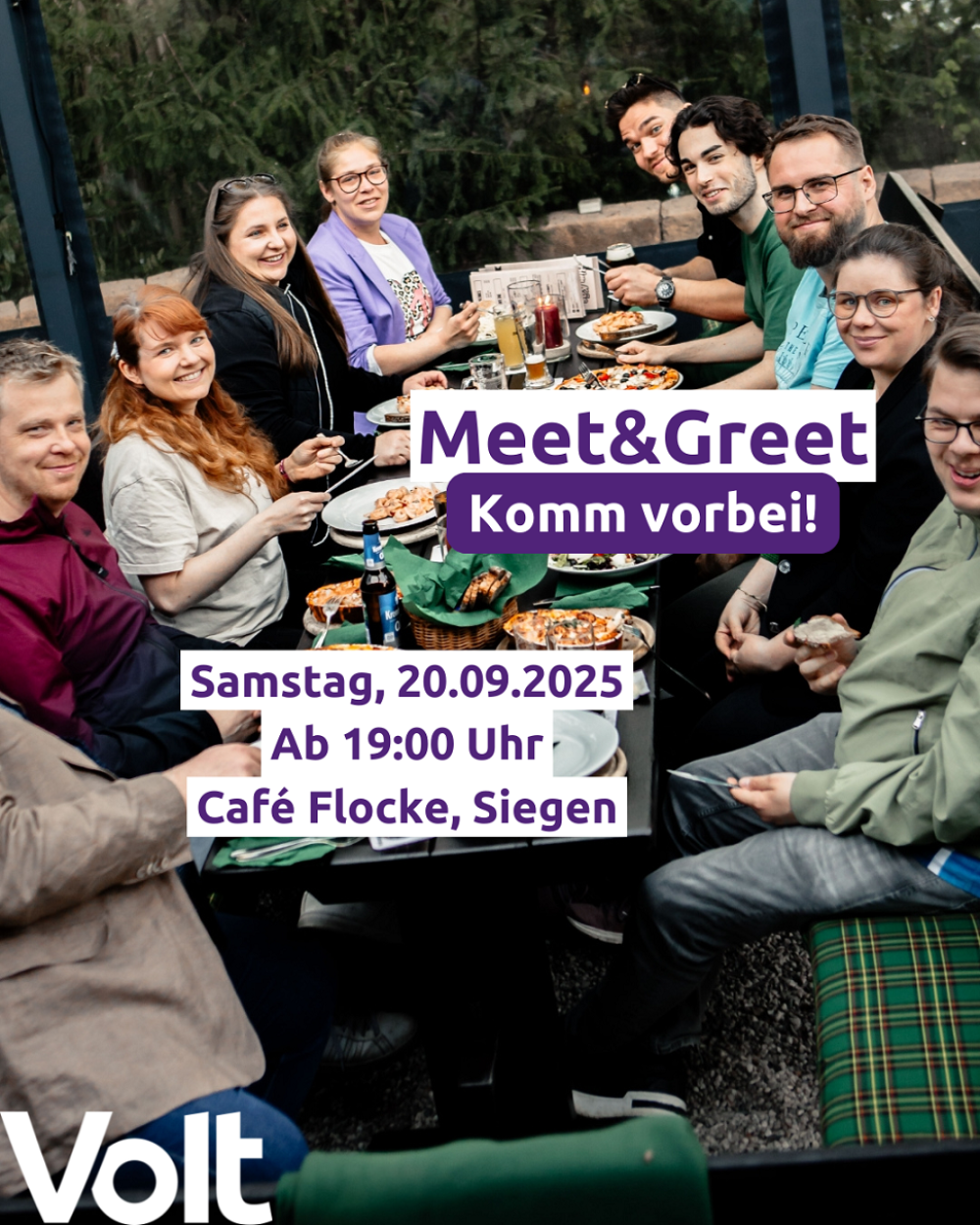 Ob Volt-Fan oder einfach nur neugierig – bei leckeren Getränken und guter Stimmung hast du die perfekte Gelegenheit, uns kennenzulernen, Fragen zu stellen und zu hören, was wir in Siegen und Europa so vorhaben.